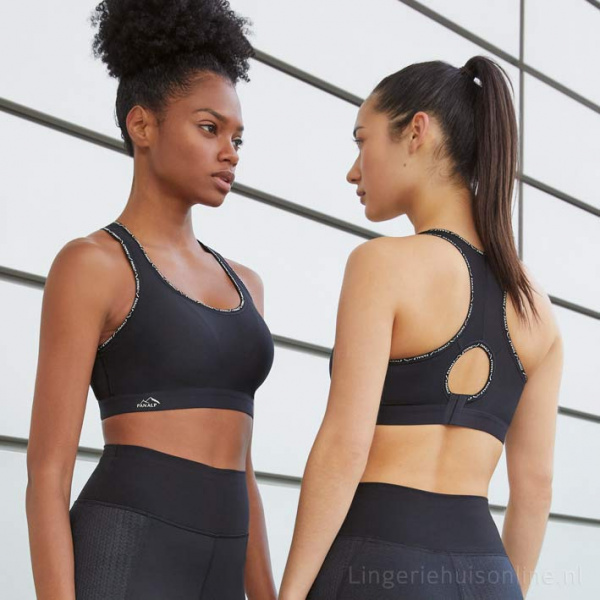• Zonder beugel, met sportieve bustier-look en omsluitende pasvorm.