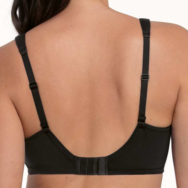 Qua uiterlijk is de Anita Claire eenvoudig en strak gehouden. Alleen de kleine gouden ringetjes bij de aanzet van de schouderbandjes en tussen de cups geven een subtiele afwerking. Verder geen kant of tierlantijntjes – gewoon een basic, functionele bh die een mooie, gladde vorm geeft onder kleding.