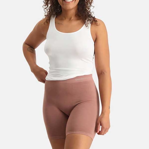 Het Bamboo Basics Suze anti-schuurbroekje is een korte biker short dames die vaak gedragen wordt onder een jurk of rok. Het broekje valt tot halverwege het bovenbeen en kan helpen om het schuren van de benen te verminderen tijdens het lopen of bewegen. Dit broekje tegen schurende benen heeft geen zijnaden. Hierdoor blijft het anti schuur broekje onopvallend onder kleding en kan het gedragen worden onder verschillende soorten outfits.