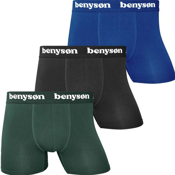 Bamboe heren boxershorts 3-Pack BENY-7016 Benyson bevat verschillende kleruen ondergoed, perfect om wat variatie in je ondergoed collectie te brengen. Deze short zijn stijlvol en dragen erg comfortabel. De shorts gemaakt van bamboevezel staan bekend om zijn temperatuurregulatie en vochtabsorbatie waardoor je de hele dag door droog en comfortabel blijft. De boxershort sluit perfect aan rond het lichaam, zonder te knellen. Probeer zelf de voordelen van bamboo ondergoed en geniet van de combinatie comfort en duurzaamheid.