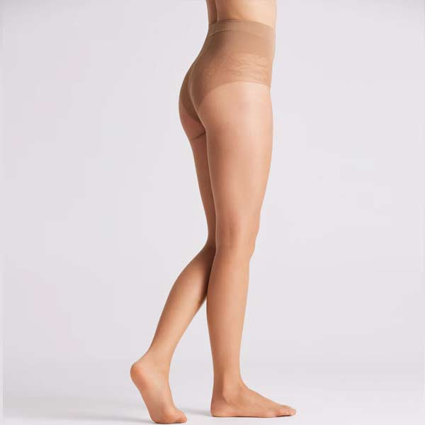 De panty heeft een onzichtbare teen (invisible toe). Dat betekent dat het teenstuk minder opvalt en de afwerking netter oogt bij fijn schoeisel. De stof bestaat uit polyamide met elastaan, waardoor de panty goed aansluit, soepel meebeweegt en zijn vorm beter behoudt. Klanten die snel een ‘plakkerig’ gevoel hebben in beenmode, kiezen dit type vaak juist omdat het licht aanvoelt op de huid.