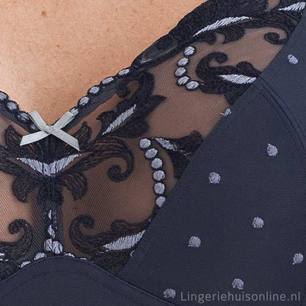 - De bh is verder versierd met een stijlvolle polka dot-print, wat zorgt voor een tijdloze en vrouwelijke uitstraling.