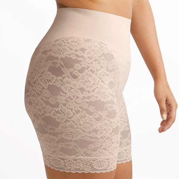 Maidenform corrigerende hoge short met kant DMS095 - Een corrigerende short uit de serie Tame your tummy. Dit broekje heeft een brede tailleband en lange kanten pijpjes. Een comfortabele short die niet knelt of rolt.