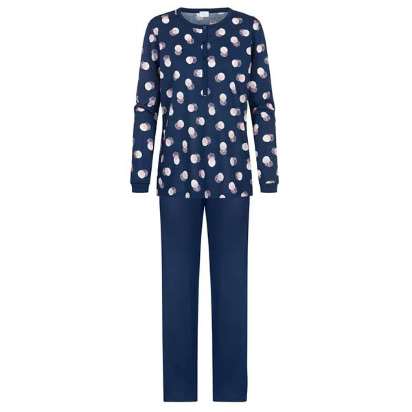 Mey dames pyjama volledig katoen met korting 1240017 Scribbled Dots Deep Marine