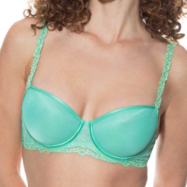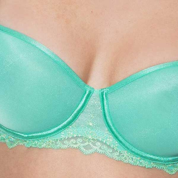 Luchtige half cup spacer bh van Mey in zomers Seafoam. Versierde bandjes, mooie details en perfect onder tops met brede halslijnen. Laatste maten, op = op! Mooi met de bijpassende slip Mey 79635.