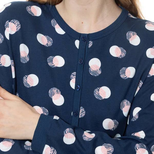 Dit Mey katoenen nachthemd uit de serie Scribbled Dots in de kleur Deep Marine is een fijne keuze voor wie houdt van comfortabele nachtkleding. Het nachthemd heeft lange mouwen met boorden, een knoopsluiting bij de ronde hals en een casual pasvorm. Gemaakt van 100% katoen (single jersey) en OEKO-TEX Standard 100 gecertificeerd. Extra mooi: er zit nu een leuke korting op.