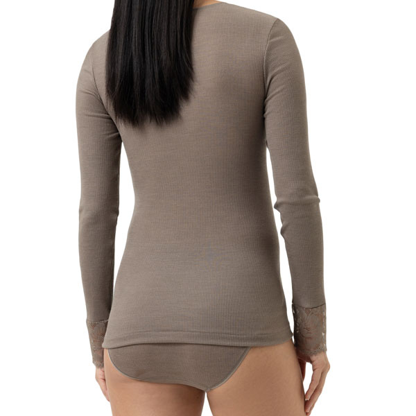 Mey Wool Love wollen dames shirt met lange mouwen van merinowol en zijde. Licht aansluitend. Warm, ademend en zacht. Gehele collectie Mey Wool Love / Wollen ondergoed.