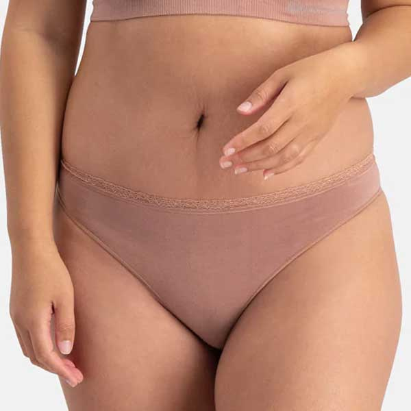 Naadloze string Amber Bamboo basics, 3 naadloze dames strings met kanten waistband. Gemaakt van zacht, ademend en hypoallergeen bamboetextiel. Gehele aanbod Bamboo basics.
