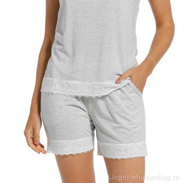 Pastunette deluxe sale shortama met streepje en kant - zacht modal met een romantisch kantje.