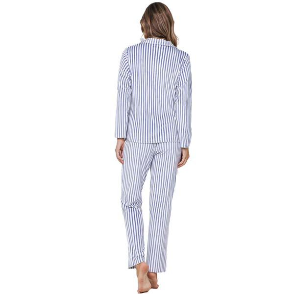 Op zoek naar een warme flanel pyjama dames met een klassieke uitstraling? Deze Pastunette pyjamaset uit de Blue Fog serie (121252-132-1 / 510) is een heerlijke keuze voor koude nachten én ontspannen ochtenden. De set bestaat uit een top met lange mouwen en een lange broek, beide in een stijlvol blauw-wit streepdessin.