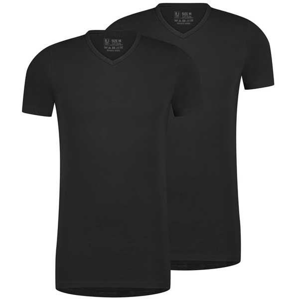 Dit 2-pack van de RJ Bodywear Everyday T-shirt Venlo 37-066 is een strakker body fit (d.m.v. elastan) aansluitend heren T-shirt met V-hals, afgezet met een boord. Gehele collectie ondergoed / RJ Bodywear.