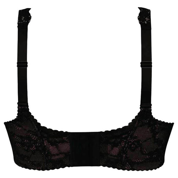 De bh is voorzien van brede, verstelbare schouderbandjes die zijn afgewerkt met kanten details. Deze bandjes zorgen voor een mooi uitstraling, maar bieden ook extra comfort doordat ze de druk op de schouders verminderen. Aan de achterkant is de bh uitgerust met een powertule gevoerde rug, wat ook weer zorgt voor extra stevigheid en ondersteuning.
