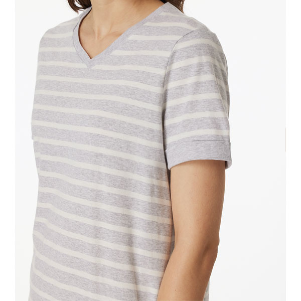 Dankzij het ademende katoen voelt de pyjama zacht en soepel aan en blijft hij ook na veel wassen mooi in vorm. De tijdloze strepen geven het geheel een frisse uitstraling, terwijl de 3/4-broek zorgt voor extra draagcomfort in zowel warme als koelere nachten.
