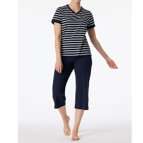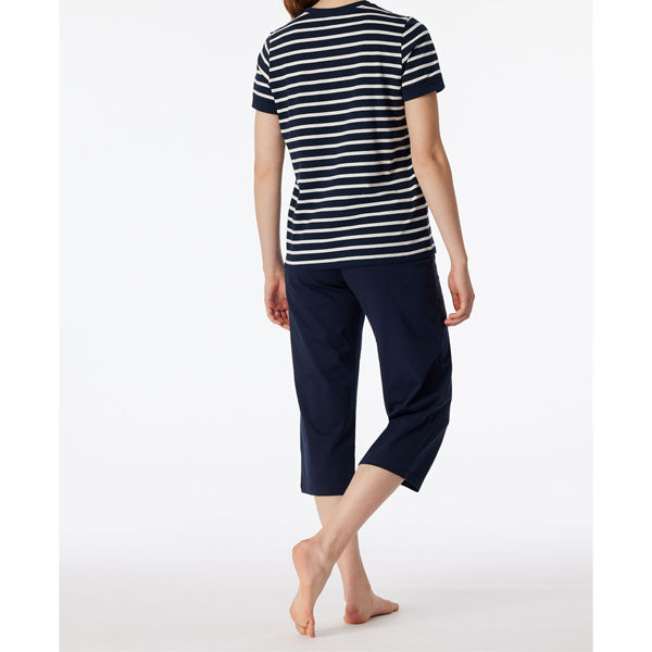 Schiesser 181254 dames pyjama volledig katoen capribroek en tijdloos gestreept