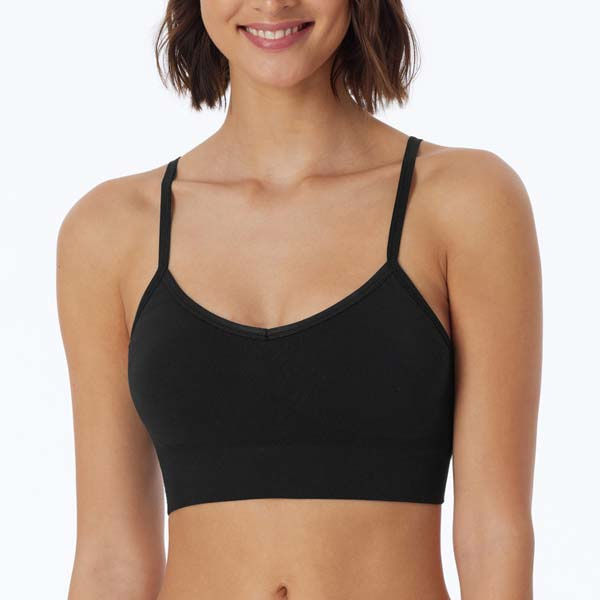 Comfortabele Schiesser bh-top zonder sluiting 181102. Deze voorgevormde top zonder beugel met verwijderbare pads biedt een juiste ondersteuning aan de borsten. Gemaakt van duurzaam, gerecycled materiaal. Bekijk het ruime aanbod Schiesser ondergoed.