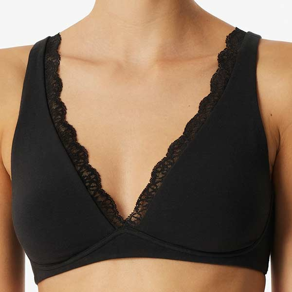 Schiesser bh zonder beugel katoen 183241 van biologisch katoen met een klein zacht sierrandje langs de cup van kant. De bandjes izjn op meerdere manier te dragen. Gehele aanbod katoenen bh / Schiesser.