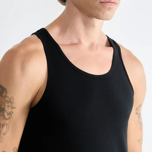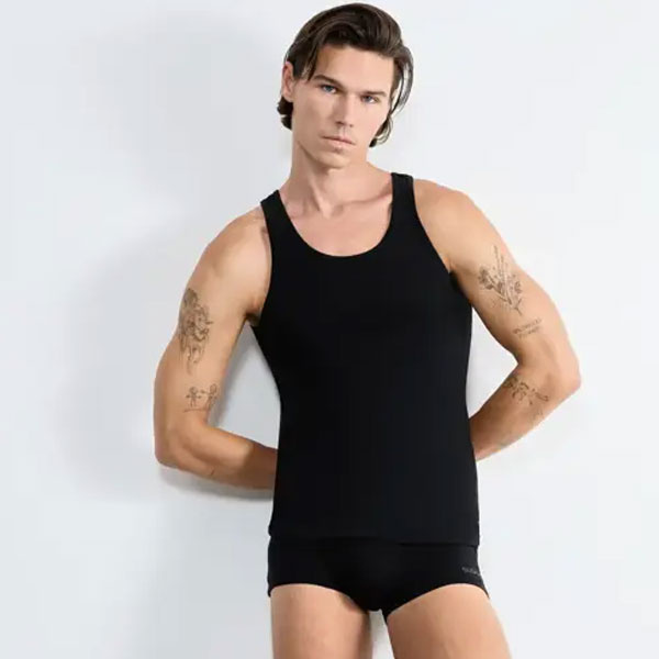 Deze Sloggi 2-pak tanktops 10217898 bestaat uit twee heren hemden van biologisch katoen met stretch. Het materiaal voelt zacht aan, sluit goed aan op het lichaam en beweegt soepel mee. De tanktops zijn uitgevoerd als mouwloze basics met een aansluitende pasvorm en vormen een praktische basis onder een overhemd, trui of T-shirt.