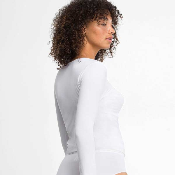Het ondershirt heeft een ronde hals en lange mouwen. De afwerking is rustig, met vlakke randen bij de onderzoom en mouwuiteinden, zodat het shirt mooi onder kleding blijft liggen. U kunt het dragen als ondershirt, maar ook als longsleeve (basic shirt) door de neutrale uitstraling. Aan de zijkant bij de zoom zit een klein logo-detail.