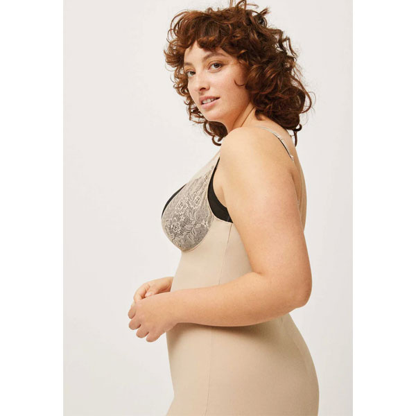 Het model helpt de buik platter te laten lijken, geeft extra controle rondom de onderbuik en zorgt tegelijk voor een mooi gevormde uitstraling. Het zachte, dunne materiaal sluit prettig aan op het lichaam en blijft discreet onder kleding. De kanten afwerking bij het decolleté geeft de onderjurk een vrouwelijke en elegante uitstraling, terwijl de siliconen rand aan de onderzijde helpt om het model goed op zijn plaats te houden.