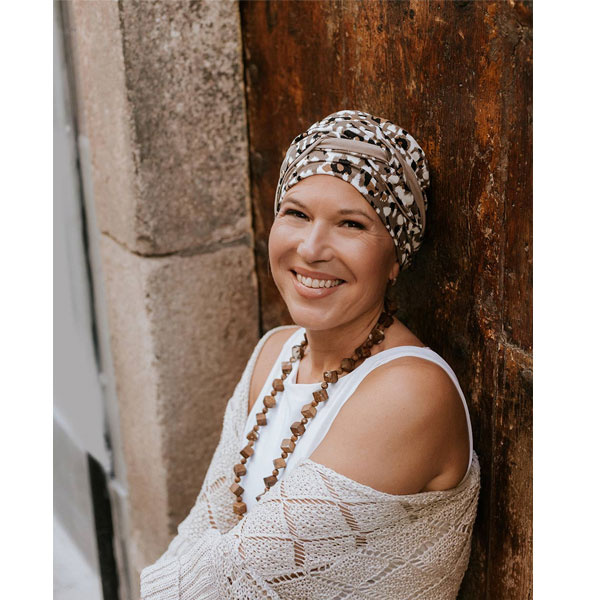 Emma Print - oncologische hoofdbedekking met vlechtaccent
