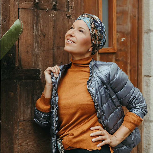 Susan Print 1872 is een comfortabel turbanmutsje met zachte plooien voor extra volume. De bamboevoering voelt zacht aan, is antibacterieel en helpt de temperatuur van de hoofdhuid te reguleren. Geschikt bij haaruitval door chemotherapie of alopecia. Klik hier voor het gehele aanbod chemo mutsjes / Felice Headwear. Direct leverbaar.