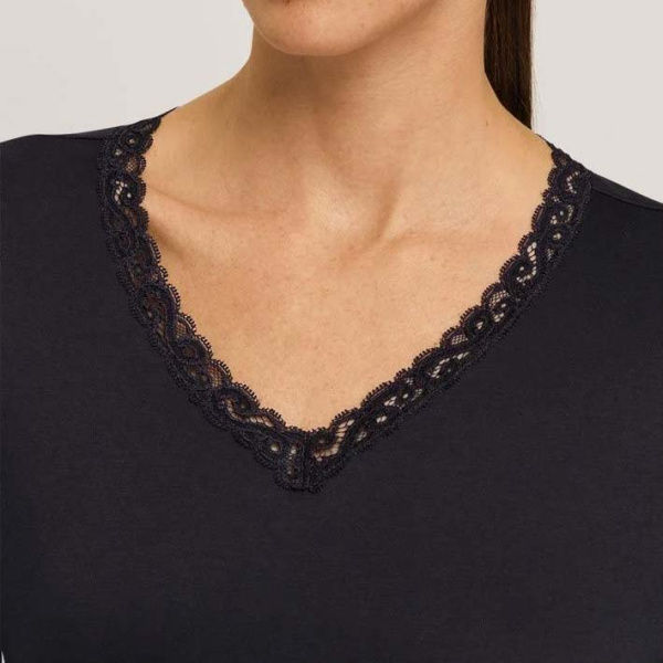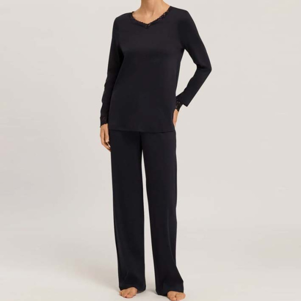 Hanro moments nachtkleding katoenen pyjama dames 07-7041 met lange mouw en lange broek, afgewerkt met prachtig kant langs de V-hals en mouwen. Een perfecte keuze voor voor tijdens de nacht. Bekijk het gehele aanbod Hanro / nachtkleding.