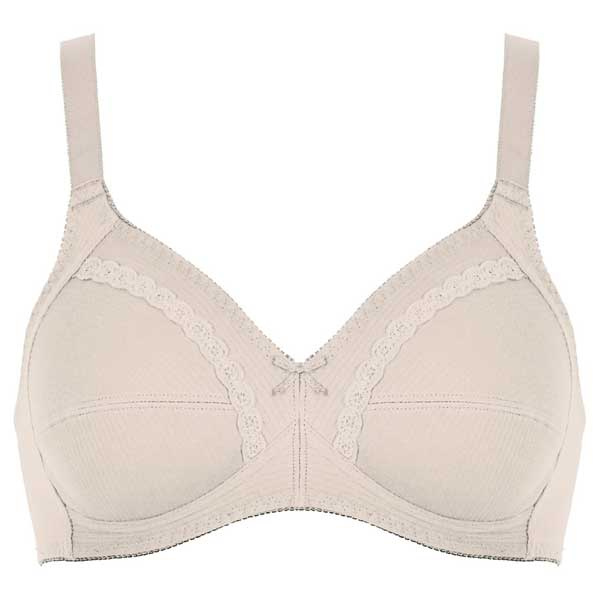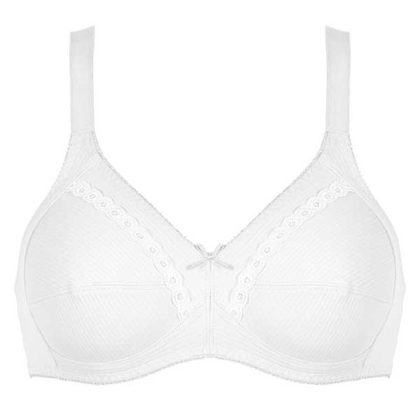 De katoenen bh 86545 Naturana is een fijne basis bh voor elke dag. Dit model komt uit de Cotton collectie en is gemaakt als echte 100% katoen, voor wie houdt van natuurlijke materialen op de huid. De bh is een bh zonder beugel met zachte, ongevoerde cups, waardoor hij licht draagt en prettig zit van ochtend tot avond. Ideaal als je zoekt naar een comfortabele katoenen bh zonder beugel met een rustige pasvorm en een vrouwelijke uitstraling. De cups zijn niet voorgevormd, maar hebben een naadconstructie die zorgt voor lichte ondersteuning en een mooie, natuurlijke vorm. Onder de borst zit een elastische onderbustband die helpt om de bh stabiel te laten zitten zonder te knellen.