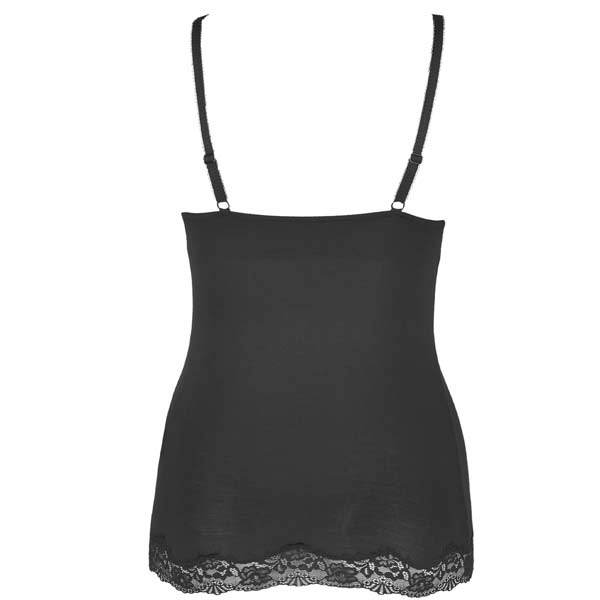 Dit bh-hemd is Oeko-Tex gecertificeerd. De kant bestaat uit 80% polyamide en 20% elastaan.