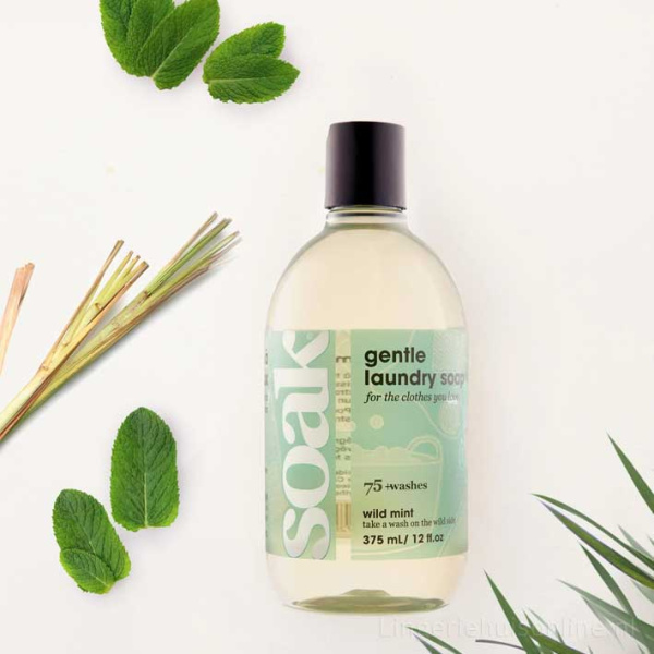 Soak Wild Mint 375ML is een verfrissend en doeltreffend wasmiddel dat speciaal ontwikkeld is voor het wassen van je meest kwetsbare kledingstukken zoals lingerie, bh’s, badmode en fijne breisels.