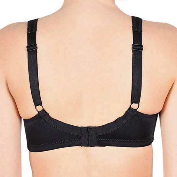 De brede verstelbare schouderbandjes zijn licht gevoerd en kunnen aangepast worden voor een goede pasvorm. Door de breedte verdelen de bandjes de druk over de schouders. Aan de achterkant heeft de bh een brede haak-oog sluiting met meerdere standen. Dit maakt het mogelijk om de omvang aan te passen. De rug is glad afgewerkt, waardoor de bh onder kleding minder zichtbaar is.
