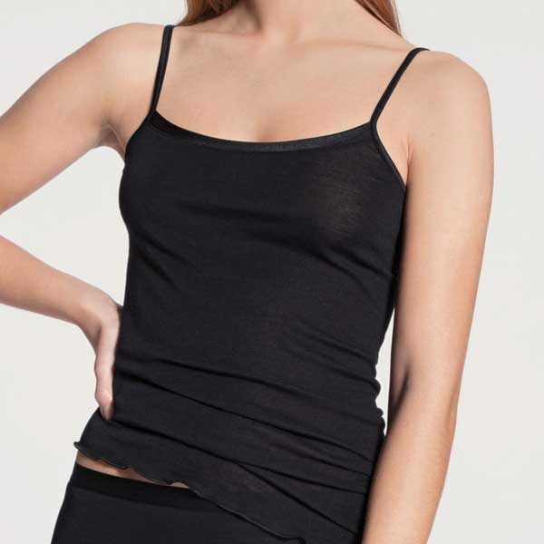 Wol met zijde hemd true confidence 10435 Calida - luxe warm wol met zijde hemdje met verstelbare spaghettibandjes. Door de combinatie van deze 2 natuurlijke vezels heeft het hemd een maximaal draagcomfort, is temperatuur regulerend, ademend en zacht. Direct leverbaar! Bekijk de gehele collectie Gehele aanbod thermokleding / wollen ondergoed / Calida.